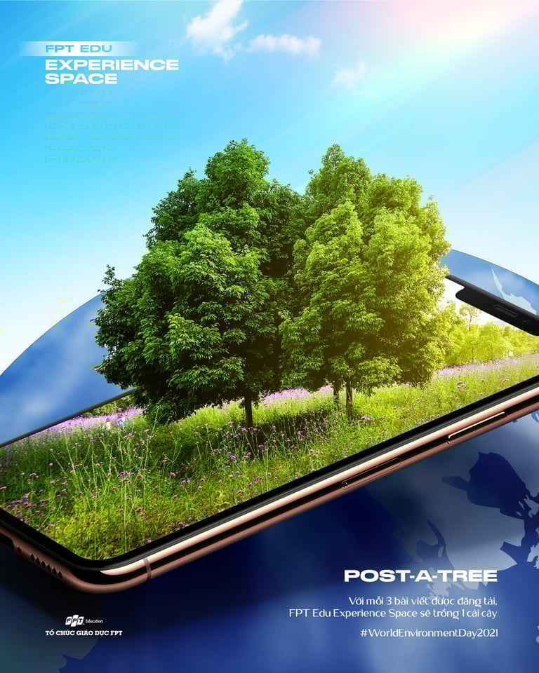 Với 3 bài viết được đăng tải trên 3 tài khoản Facebook khác nhau, kèm 2 hashtag #POSTATREE #FPTEduExperienceSpace, chúng mình sẽ giúp bạn trồng một cái cây, tô thêm màu xanh cho Trái Đất.