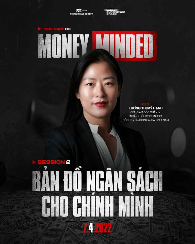 Tại Session 3 của FES-Camp 03: Money Minded sẽ là buổi học Quản lý tài chính đặc biệt dành cho các bạn NỮ, giúp chuẩn bị tinh thần cho hành trình tự chủ tài chính cá nhân, sẵn sàng cho hôn nhân và làm “nội tướng” trong gia đình.