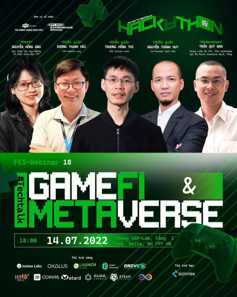 Tại FES-Webinar 18, học sinh, sinh viên, học viên toàn Tổ chức Giáo dục FPT đã được tìm hiểu nhiều hơn về GameFi & Metaverse cùng những kiến thức công nghệ mới cũng như nhận về cơ hội tìm kiếm việc làm trong lĩnh vực Blockchain đến từ các đại diện của Icetea Labs và Epic War.