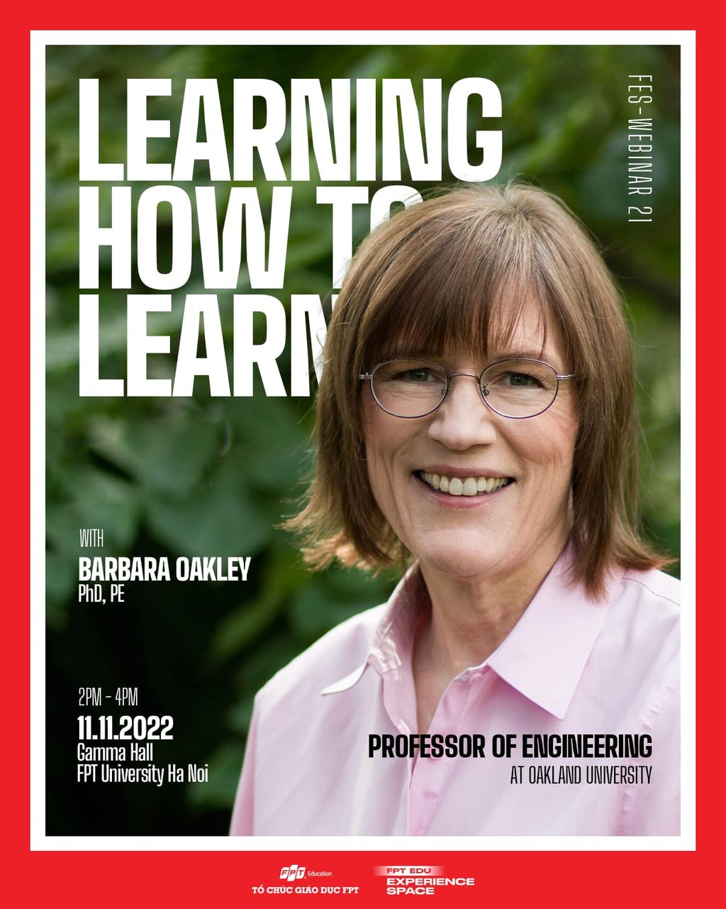 FES-Webinar 21 với chủ đề “LEARNING HOW TO LEARN” được tổ chức nhằm mục đích tìm hiểu về cách não bộ học tập, các kỹ thuật ghi nhớ và các phương pháp tốt nhất để dạy - học hiệu quả với sự xuất hiện của Tiến sĩ Barbara Oakley.