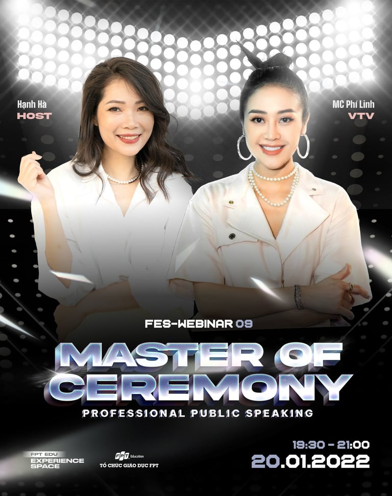 Nằm trong khuôn khổ Trại Người dẫn Chương trình FES-CAMP 02, FES-Webinar 09 “MASTER OF CEREMONY là nơi các bạn có buổi gặp gỡ và trò chuyện cùng MC Phí Linh VTV, cùng lắng nghe những chia sẻ về câu chuyện tự tin thể hiện bản thân trước công chúng nói chung và nghề Dẫn chương trình nói riêng.