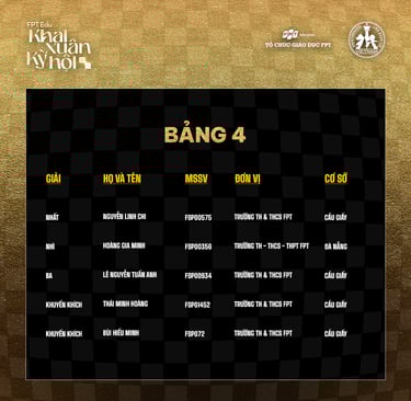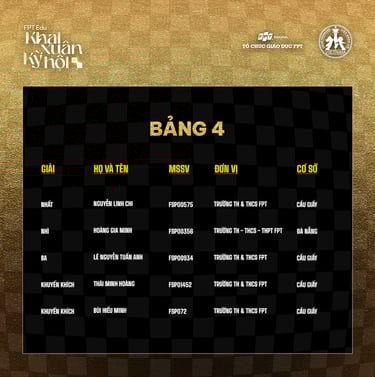 Các kỳ thủ tham gia tranh tài tại Chung kết là 15 cái tên xuất sắc nhất mỗi bảng. Chung kết FPT Edu Khai xuân kỳ hội 2022 đã chính thức khép lại và những đại diện xuất sắc nhất đều đã lộ diện.