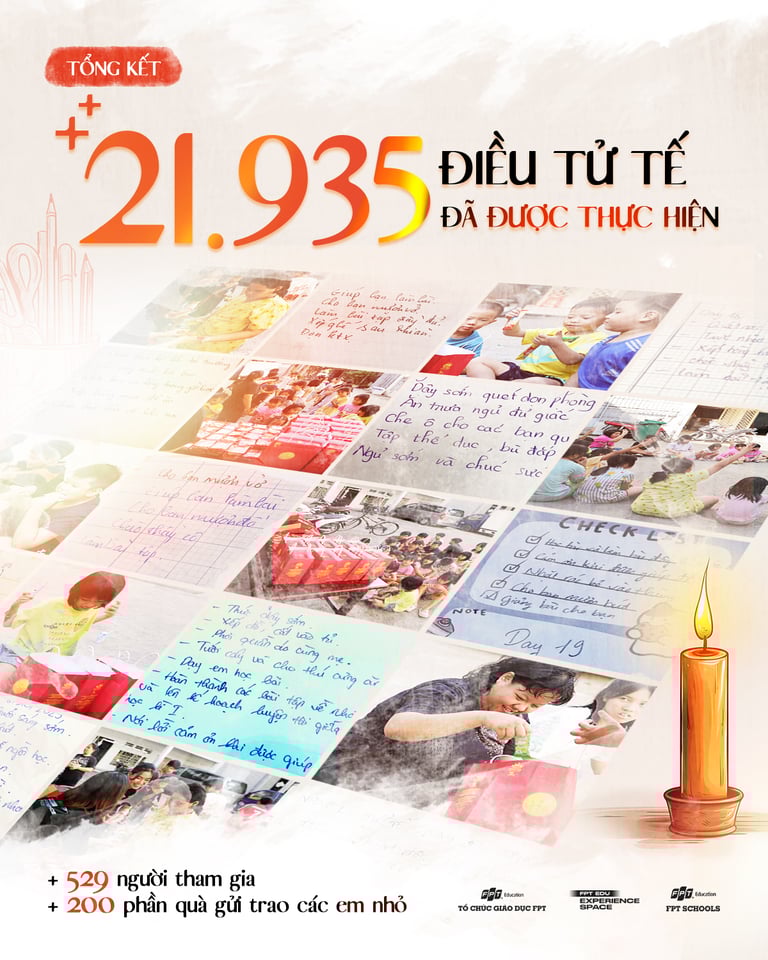 21.935 điều tử tế đã được thực hiện với sự tham gia của 529 học sinh, sinh viên từ Tổ chức Giáo dục FPT.